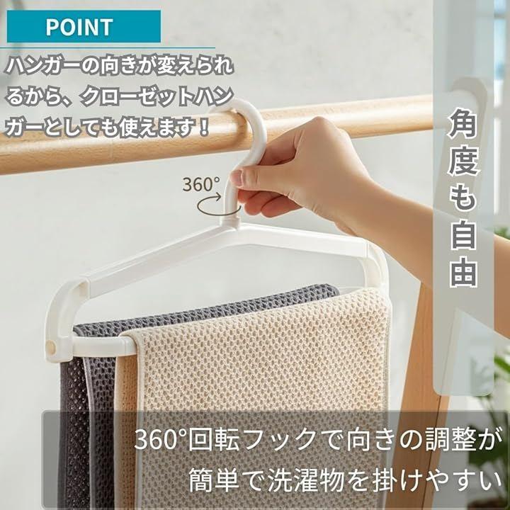 「角度も自由」360°回転フックで向きの調整が簡単で洗濯物を掛けやすい。