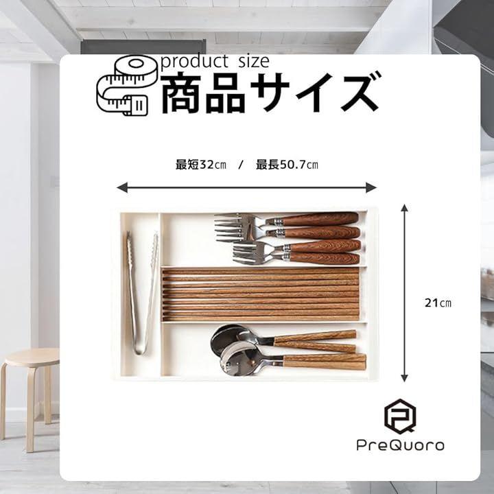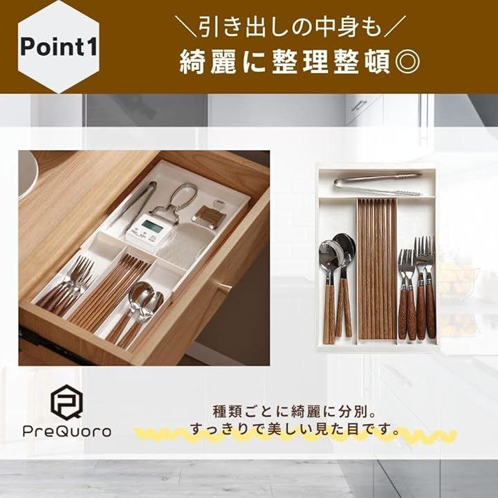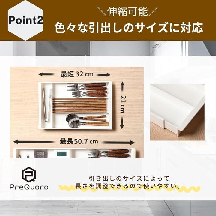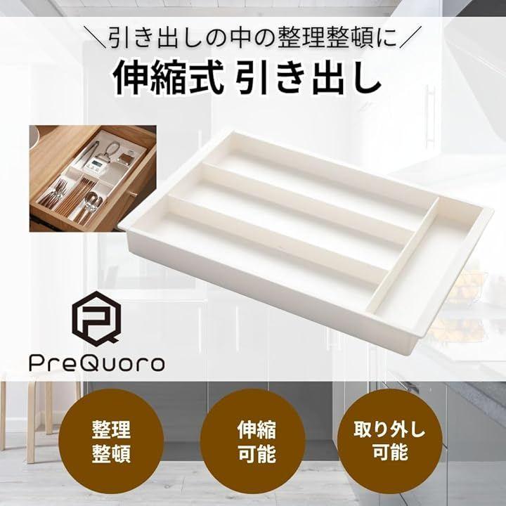 「スリムで使いやすいキッチントレー」PreQruoo 引き出し収納トレーは、伸縮オーガナイザー仕様でスペースに合わせて調整可能。