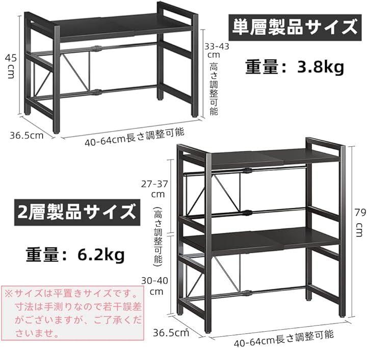このキッチン収納ラックは、伸縮タイプで幅40-60の電器を収納できます、 上に様々な小物が置くことはできます、家居スペースを二倍に拡大します。