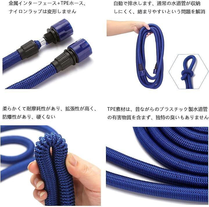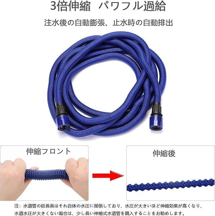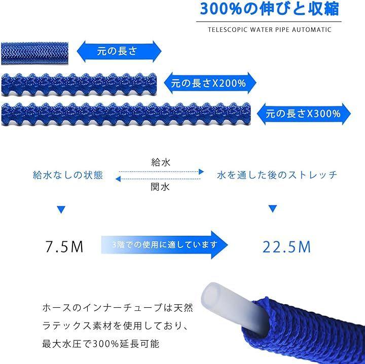 「伸縮ホース」3倍に伸びるホース、園芸ホースの内管は3層の天然ラテックス素材で作られており、水圧がかかるとガーデンホースは元の長さの約3倍まで伸びます。