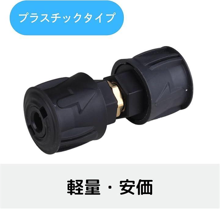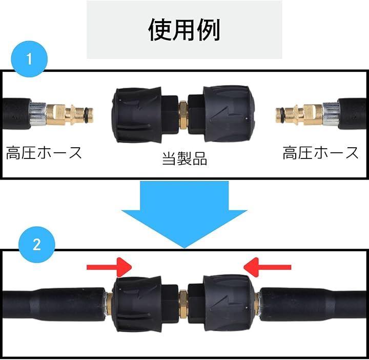 「使用方法」ホースの長さが足りないときなどに、クイックコネクトのオスのホース同士を延長アダプタに差し込みます。