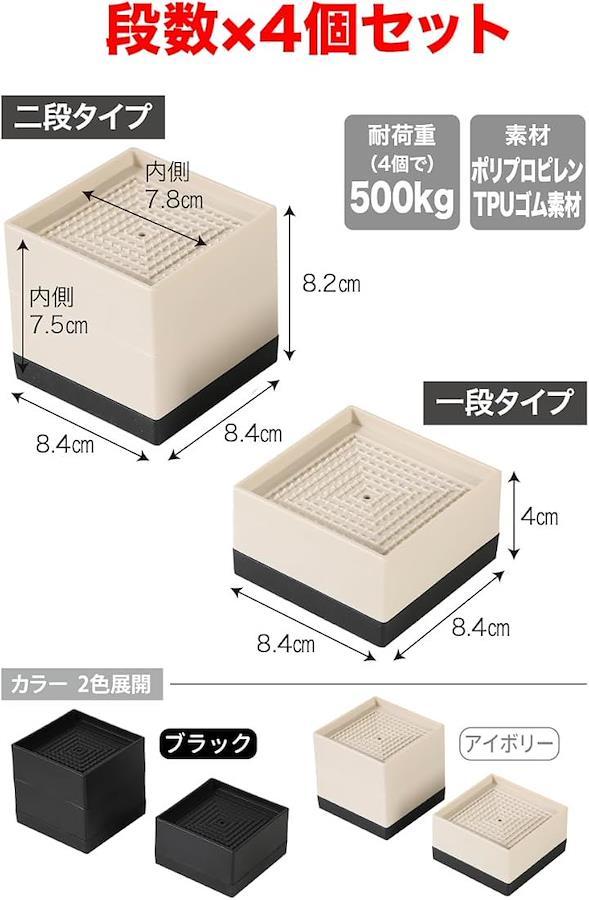 「商品詳細」サイズ:1段、縦8.4cmx横8.4cmx高さ4cm 重量:0.56cm / 2段、縦8.4cmx横8.4cmx高さ8.2cm 重量:0.56cm カラー:アイボリー / ブラック 素材:ポリプロペン TPUゴム素材