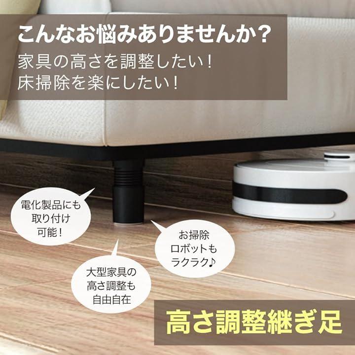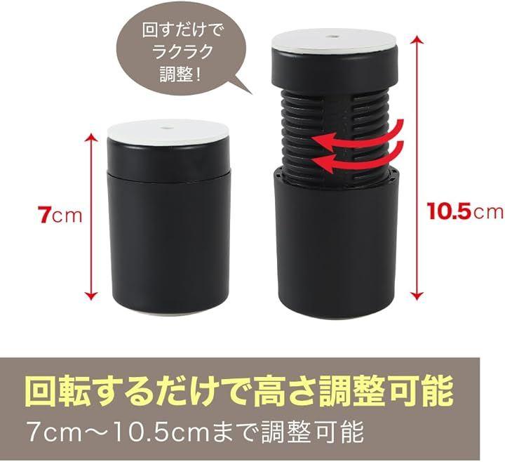「これ一つでストレスのない空間を」樹脂製の高さ調整可能な継ぎ足です。