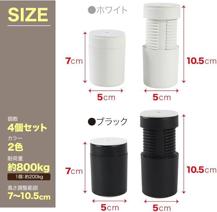 「商品詳細」個数:4個、最小縮長さ:7cm 最大伸長さ:10.5cm、最大耐荷重:1個200kg、重量:43g、カラー:ホワイト / ブラック