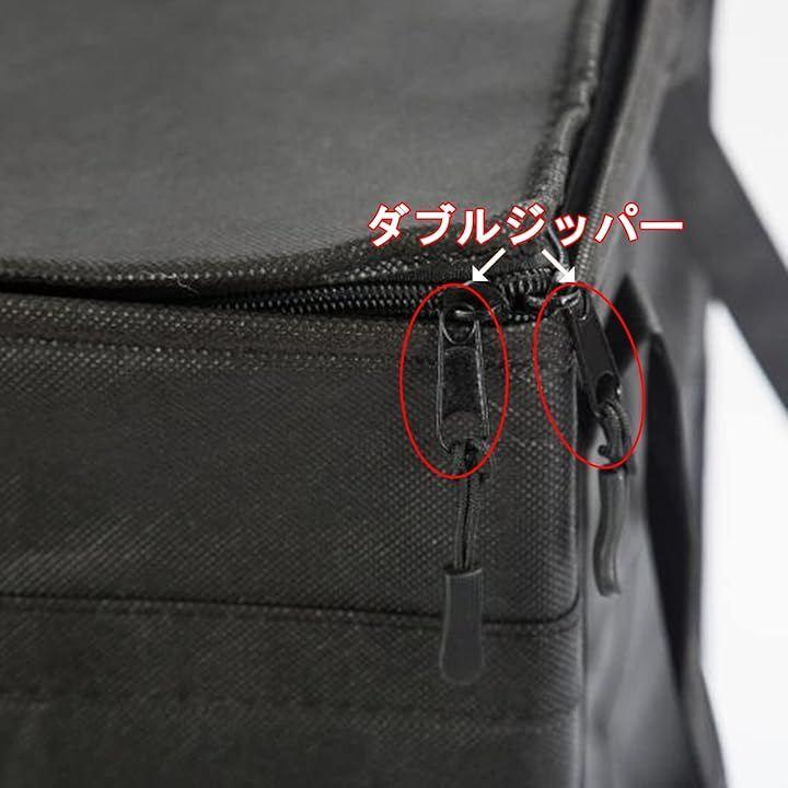 開閉しやすいダブルジッパーで左右に大きく開き物の出し入れも楽々。