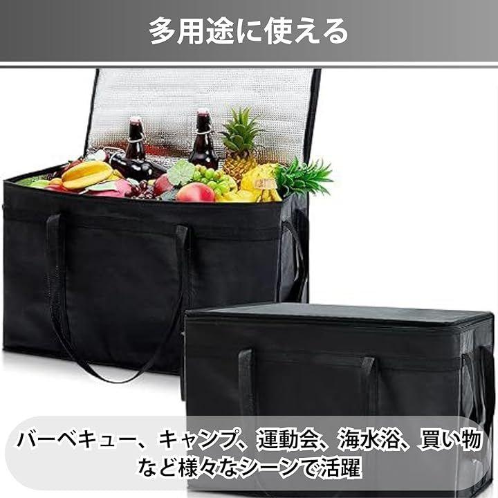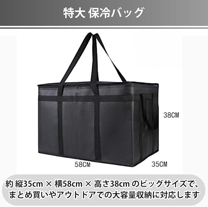 「特大 保冷バッグ」約 縦35cm x 横58cm x 高さ38cm のビッグサイズで、まとめ買いやアウトドアでの大容量収納に対応します。