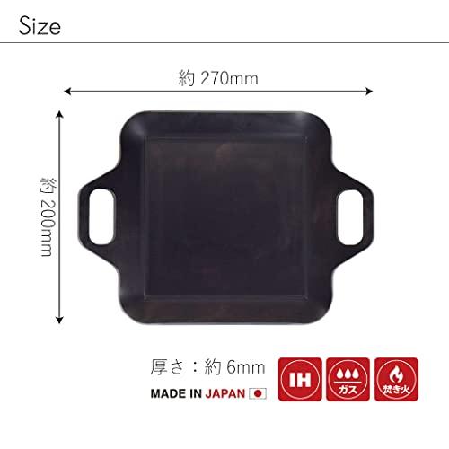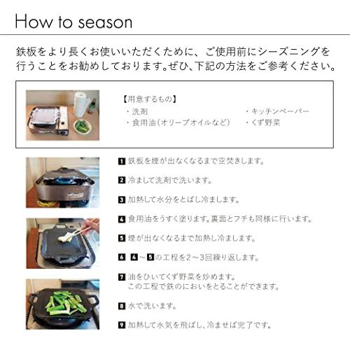 厚さ6mmと極厚の鉄製グリルプレートです。熱伝導がムラなく均一なのが特長。保温性、蓄熱性が高く、厚い食材にもしっかりと熱を通すことができます。