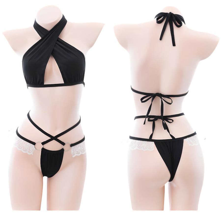 取り扱い案内 手洗いのみ【商品内容】メイド風ブラジリアンビキニ 上下セット【サイズ】女性用フリーサイズ(S~3L相当)アンダーバスト:~120cm、ヒップ:~106cm【カラー】バリエーションあり。写真参照ください。【特徴】ホルターネックのセクシーブラとメイド風のフリル付きTバックショーツの組み合わせが新鮮?伸縮性のある薄手生地と紐結びでサイズにゆとりがあります。大きなサイズ・男性の着用にも対応〇(#lf)(#lf)(#lf)商品購入前に、ストア紹介ページをご確認ください。