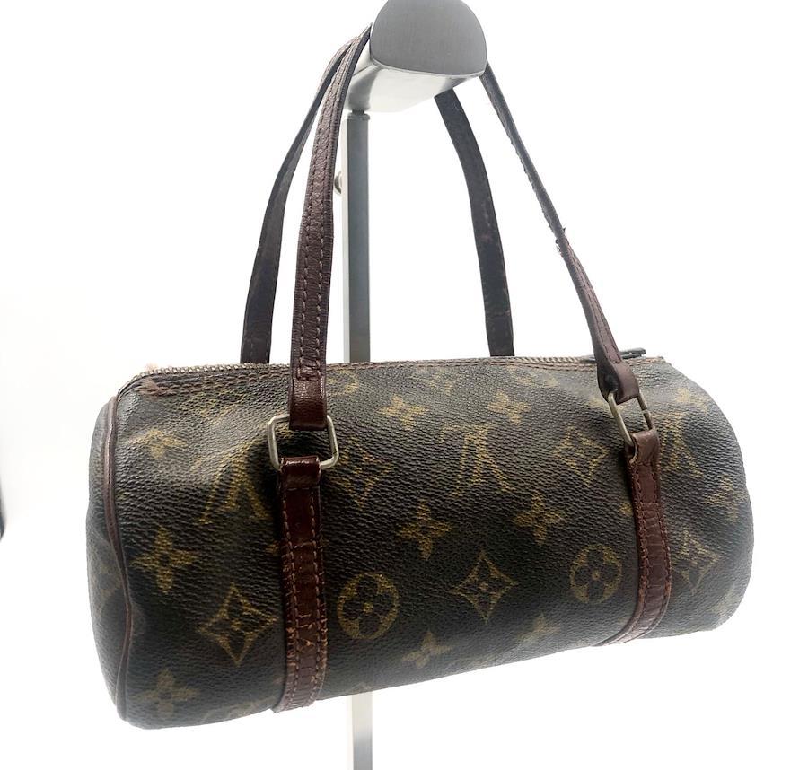 ■商品概要LOUIS VUITTON ルイヴィトンモノグラムパピヨン22 ミニパピヨンミニボストンバッグ ハンドバッグ筒形PVC×レザーブラウンピッグスキンECLAIR社ファスナー