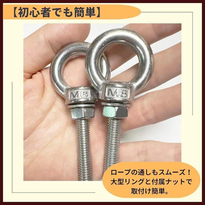「初心者でも簡単」ロープの通しもスムーズ。大型リングと付属ナットで取付け簡単。