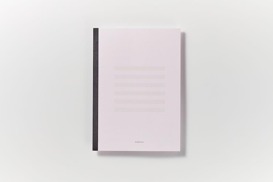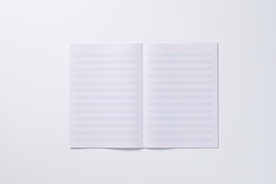 白い紙に比べ光の反射を抑えられる色上質紙を使用。中紙には、あみかけの帯が8.5mm間隔で入っています。帯によって、文字を書くときに行をはっきりと識別できます。また、シンプルな設計だから使い方は自由。罫線がないので絵や図も自由に描くことができます。