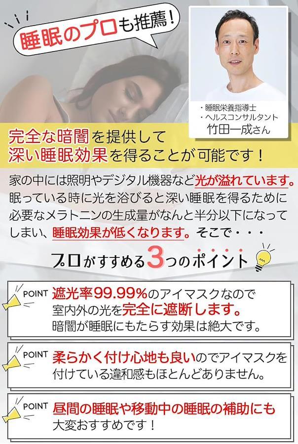 「短時間の仮眠で体力を回復させたい」という社会人や旅行者にとって、アイマスクは必需品と言える安眠グッズです。