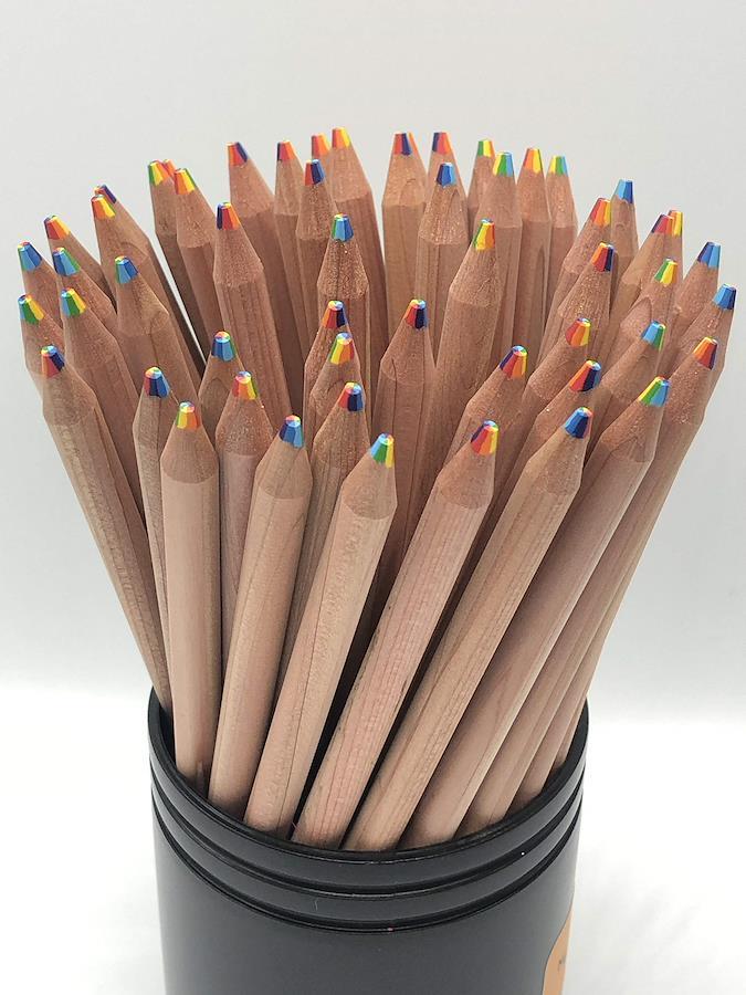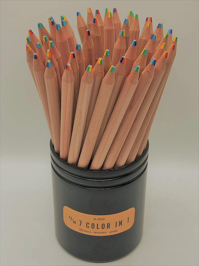【サイズ】縦7.5mm*横7.5mm*高さ180mm 鉛筆 60本入 昭和22年創業 アイボール鉛筆株式会社製 ナチュラルな木軸で柔らかな書き心地の7色芯色鉛筆です。 角度を変えることで7色の様々な色合いを楽しむことが出来ます。