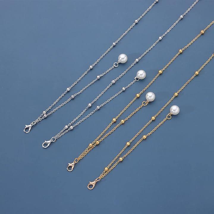 「上品なパール装飾が目を引くデザイン」華奢なチェーンに小粒のフェイクパールを丁寧に配置した、上品で洗練されたメガネチェーンです。