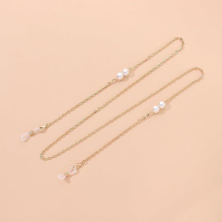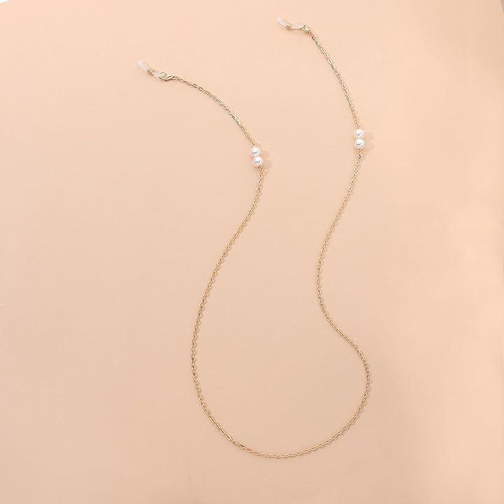 「上品なパール装飾が目を引くデザイン」華奢なチェーンに小粒のフェイクパールを丁寧に配置した、上品で洗練されたメガネチェーンです。