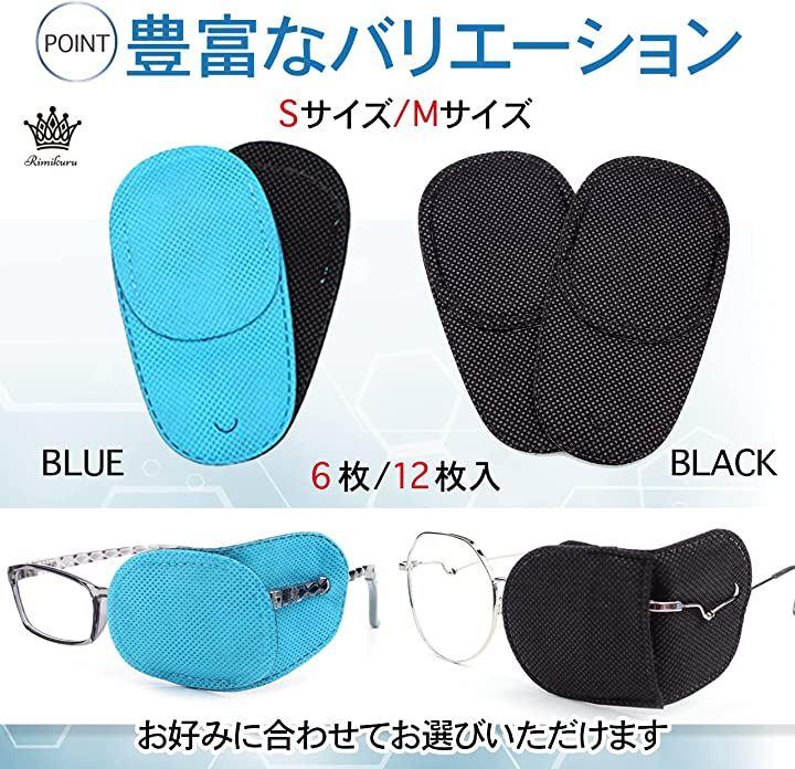 豊富なバリエーション:こちらの眼帯 メガネ用は黒とブルーの2色をそれぞれSサイズ、Mサイズご用意いたしました。