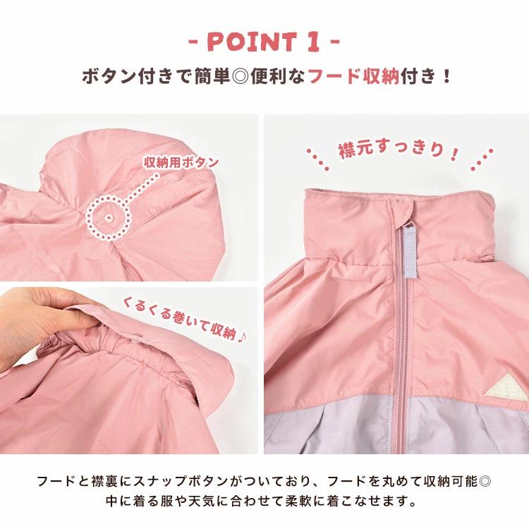 【カラバリウィンドブレーカー】ソフトなタフタ生地と通気性の良いメッシュ裏地でオールシーズン着用できる、カラフルでかわいいウインドブレーカー。豊富なカラバリで男の子も女の子も着られるラインナップをご用意♪コンパクトに持ち運べるので、季節の変わり目の上着にぴったり。生地は軽量で撥水加工がされているので、外遊びも安心◎フードはボタンで留めて収納可能です。