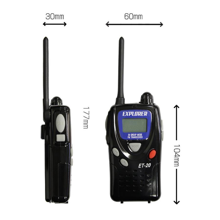 3営業日以内に発送≪新品未開封品≫:F.R.C EXPLORER エクスプローラ 特定小電力トランシーバー2台セット ET-20Xブランド F.R.C色 黒チャンネル数 20チューナー採用技術 UHF電池の個数 3 単3形 電池商品の寸法 2.8D x 5.8W x 10.3H cm【送・受信周波数】422.050~422.300MHz(12.5KHzステップ) 【電波型式】F3E【送信出力】10mW 【受信感度】-14dBμ以下(12dB SINAD) 【受信方式】ダブルスーパーヘテロダイン方式【電源電圧】DC3.6~4.5V(単3型アルカリ電池×3本別売) 【消費電流】受信待受け時 約50mA 受信最大時 約140mA 送信時 約70mA【使用温度範囲】-10度~+50度 【寸法】幅58×高103×奥行28mm(突起物含まず) 【重量】約180g(単3型アルカリ乾電池を含む)【付属品】ET-20X×2個、イヤホンマイク×2個、ベルトクリップ×2個、保証書付取扱説明書免許・資格不要で使用できる、特定小電力トランシーバー2台セットです。アウトドアや携帯電話が圏外の場所などで活躍しま