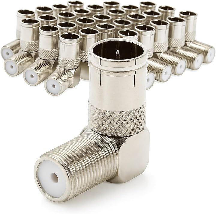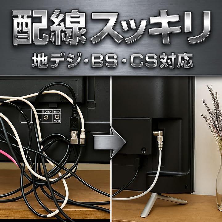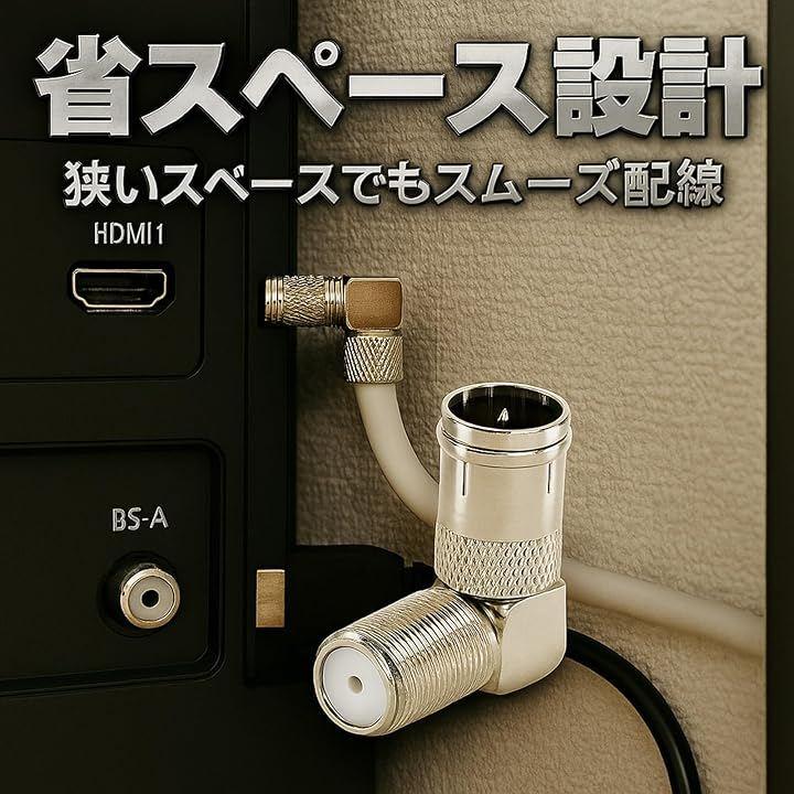 配線の端子まわりを整理したい時にぴったりの F型L字コネクタ。