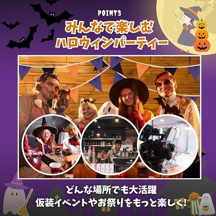 仮装イベントや商業施設のディスプレイ、小規模なホームパーティーなど、幅広いシーンにマッチし、準備の手間も削減できます。