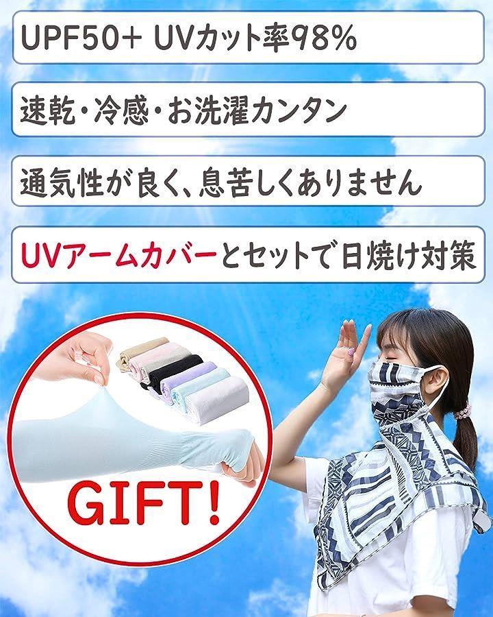 ・「UVカット率98%(UPF50+)の素材」猛烈な日差しから顔、デコルテ、首後ろまでをしっかりガード。紫外線対策の必需品です。