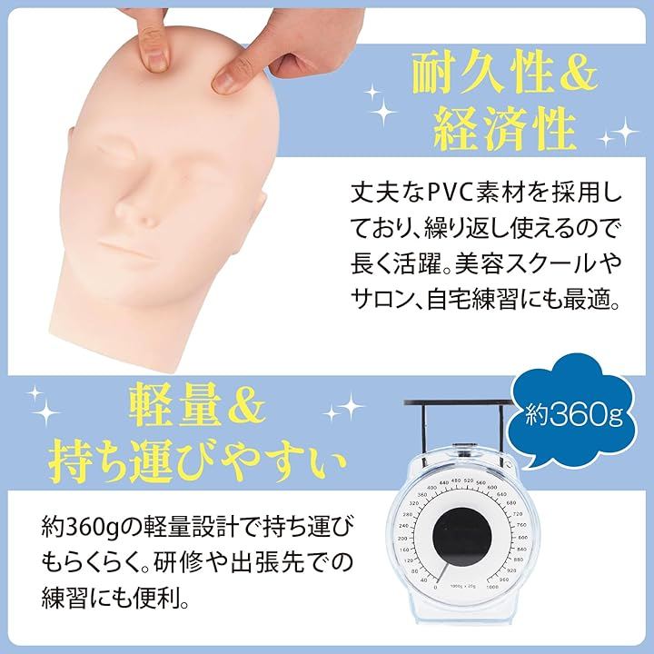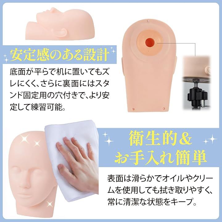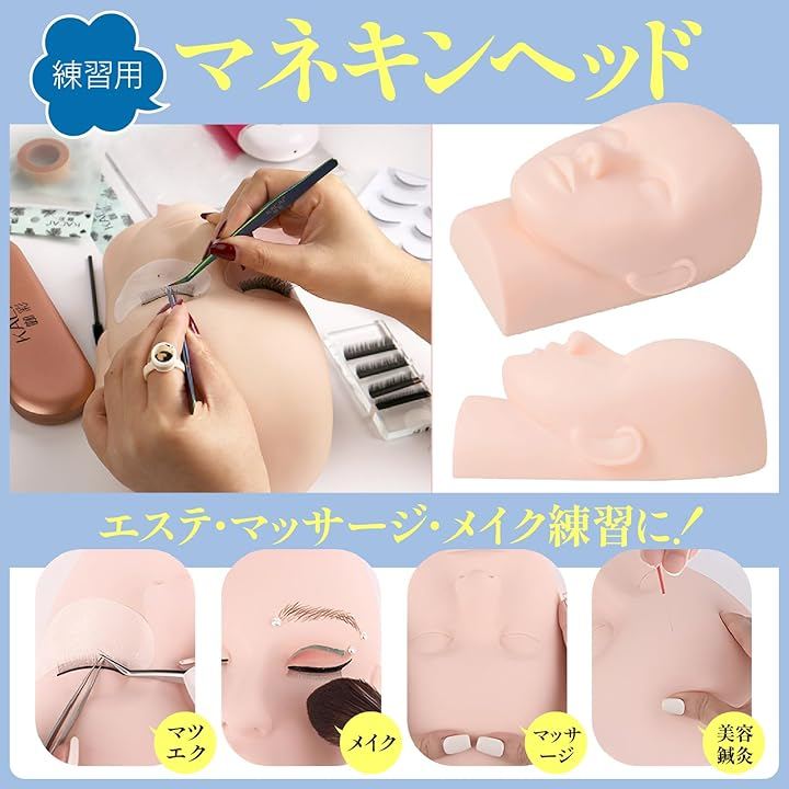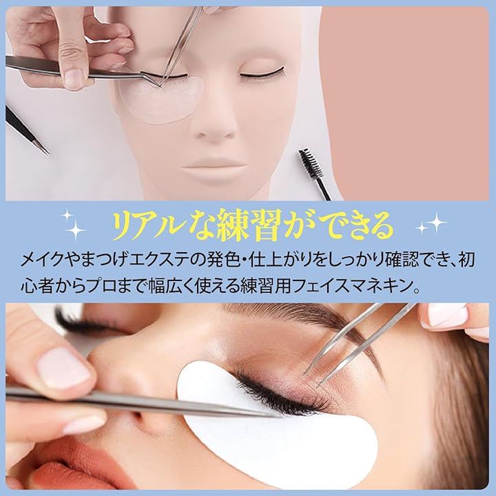 メイクやまつげエクステの練習に最適で、発色や仕上がりをしっかり確認できます。