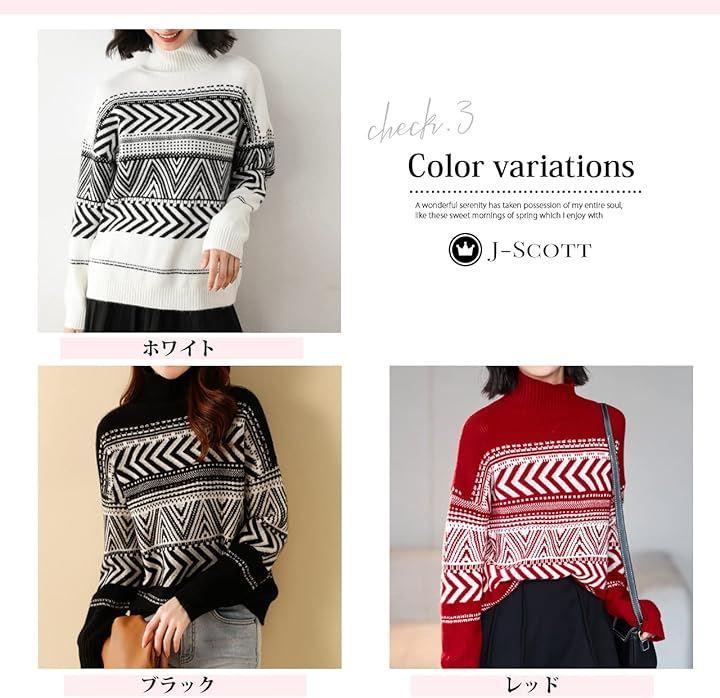Fair Isle Pattern Jacquard Knit Long Sleeve Sweater Tops Warm Fluffy Sleeves Women's JS35-BK-L