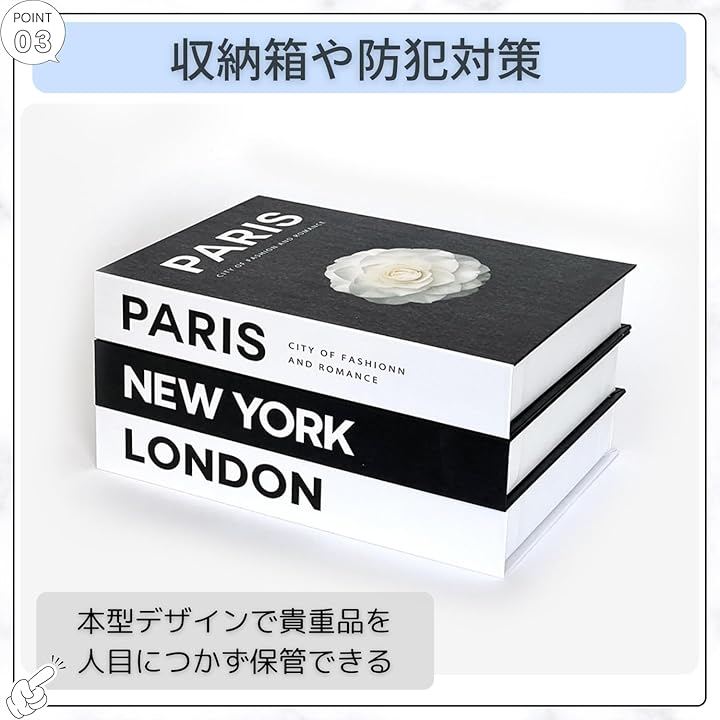 「おしゃれな本型インテリア」一見すると本のようなデザインで、リビングや書斎に置くだけで洗練された雰囲気を演出します。
