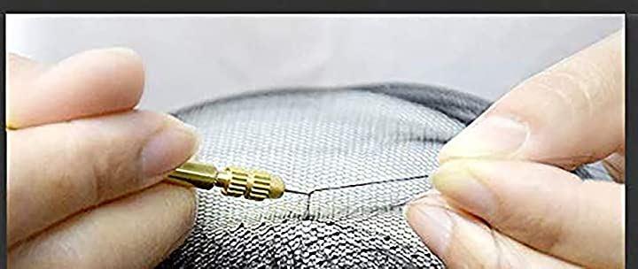 一つ一つ手植えでウィッグでメッシュ網に編んでいます。