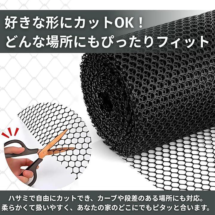 「どんな形にもピタッとフィット」 ネットはハサミで自由にカットできるので、カーブした手すりや細かい隙間にも対応。