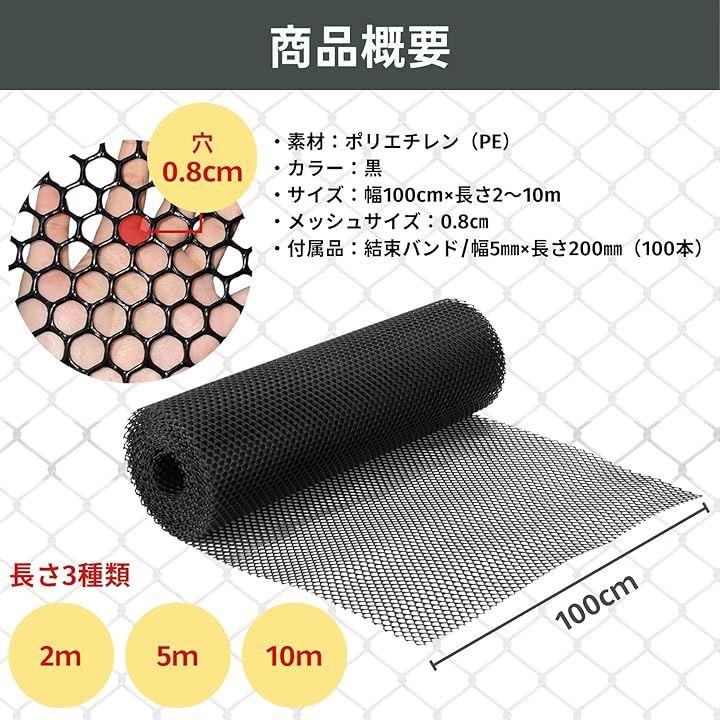 サイズ: 0.8cm穴 縦100cm x 長さ 5m 結束バンド 100本付属 |