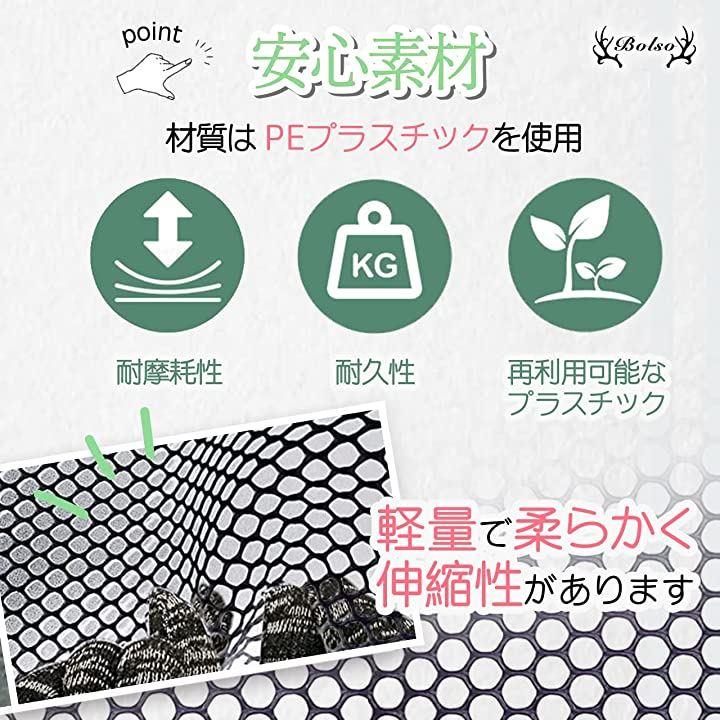 材質はPEプラスチックでできており、日光に強く、耐久性・耐摩耗性・腐食防止に優れ、長時間使用しても色あせや剥がれがありません。また、軽量で柔らかく伸縮性があり、曲げたりカットしたりできます。