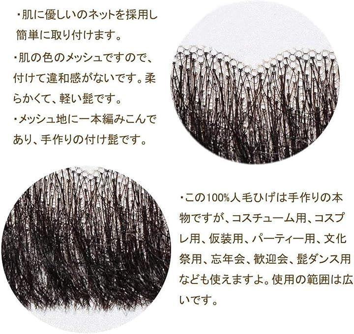 付け髭 ひげ 口髭 人毛 ウィッグ 髪製髭 手作り本物 メッシュ網つけひげ,質感がクールな非耐熱ファイバー