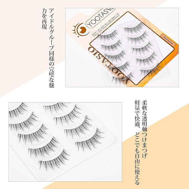 「柔軟な透明軸つけまつげ束感」YOOTASIOこのつけまつげは、アイドルグループのステージメイクからインスパイアされ、繊細な繊維とボリューム感で自然な束感を実現します。