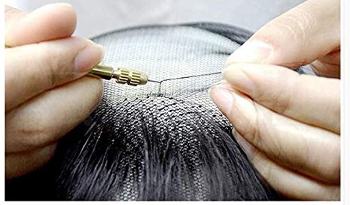 一つ一つ手植えでウィッグでメッシュ網に編んでいます。