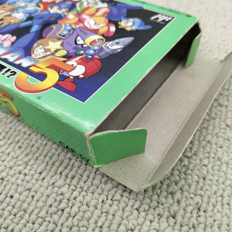 ファミコン ロックマン5 ブルースの罠!? 外箱に傷みあり。プラ台座に割れがあります。取扱説明書付属。
