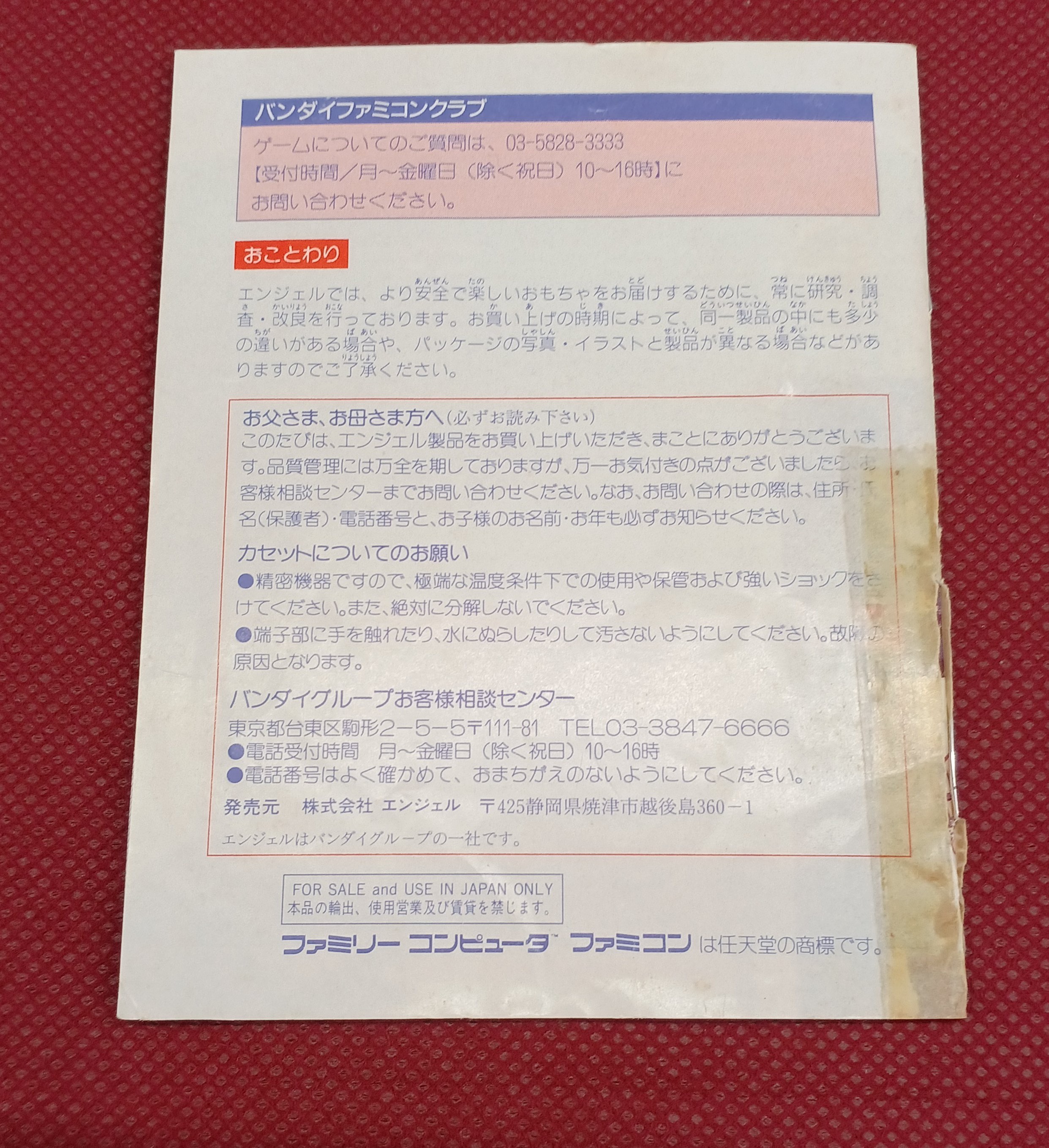 Famicom Software Dinosaur Sentai Zyuranger Angel Famicom Software