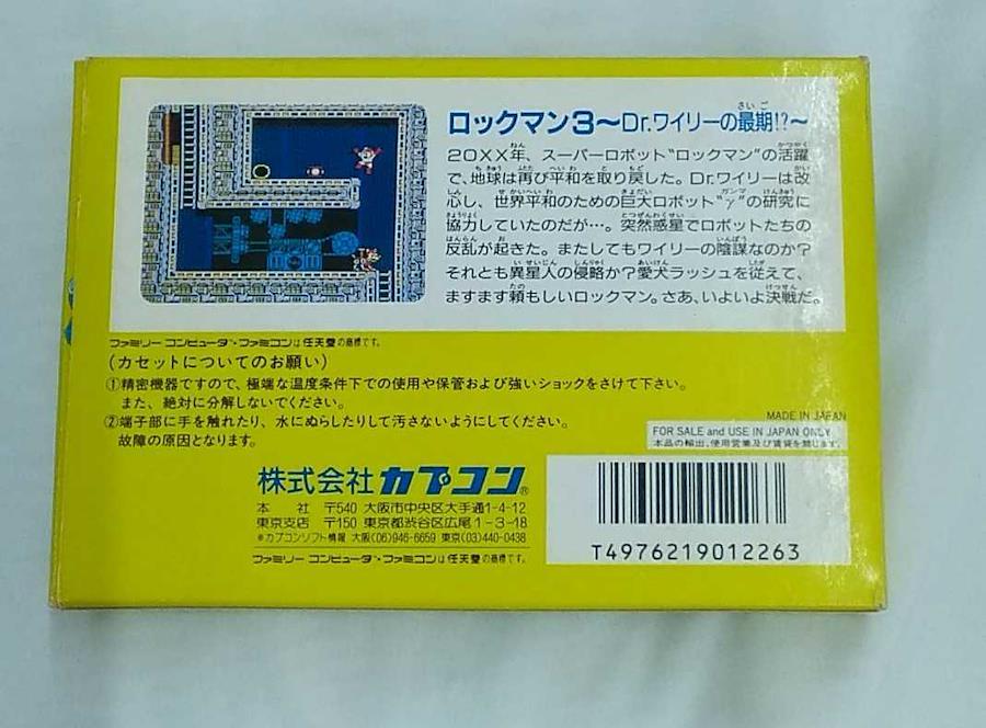 ファミコンソフト ロックマン3 カプコン ファミコンソフト カプコンロックマン3ファミコンソフト■箱、カートリッジに多少の傷・汚れなど使用感あり。取説に湿気によるヨレありますが、黴やステープラー錆はありません。年式により現状販売です。