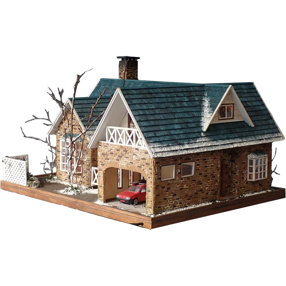 This is a miniature work of a house where you can almost hear the joyful voices of children opening presents from Santa Claus on Christmas morning.