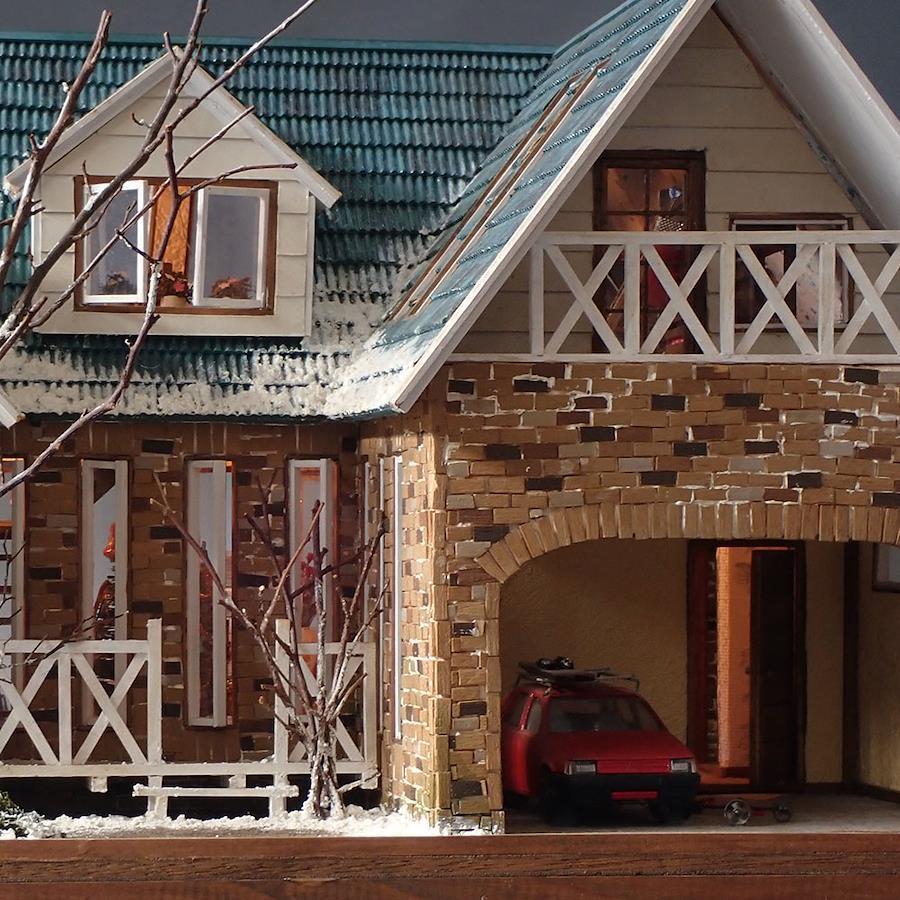 Kameda's works are popular for their unique scale and deformation while using dollhouse techniques.