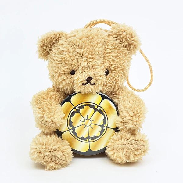モチーフ: 織田信長 / 織田木瓜(織田瓜) 特徴: 天下統一を目指した信長公の家紋「織田木瓜」を抱くベア。常に新しいことに挑戦し、戦国の常識を打ち破った信長公のパワーを授けます。現状を打破し、新しい時代を築きたいと願う「革新ベア」です。・武将解説: 「戦国の風雲児」「尾張の大うつけ」と呼ばれ、既存の価値観や伝統を打ち破り、日本の統一に向けて最も革新的な戦略を打ち出した武将。鉄砲の集団運用、楽市楽座による経済改革、比叡山延暦寺の焼き討ちなど、その行動は常に常識破りでした。彼の掲げた「天下布武」とは、武力によって天下を統一し、新しい秩序を打ち立てるという強い意志を表しています。天下統一を目前にして本能寺に散りましたが、その改革精神は後世に大きな影響を与えました。・家紋解説: 織田信長が使用した「織田木瓜」は、キュウリの切り口や鳥の巣を模したとされる紋で、子孫繁栄や豊穣を意味する吉祥紋の一つです。その力強いデザインは、信長公の**「果敢な行動力と未来を切り開く革新性」**を象徴しています。黒地に金で際立つ「織田木瓜」を抱きしめるベアは、困難を恐れず、常に新しいことに挑戦する情熱をあなたに授けます。現状を打破し、新しい時代を築きたいと願う「革新ベア」です。