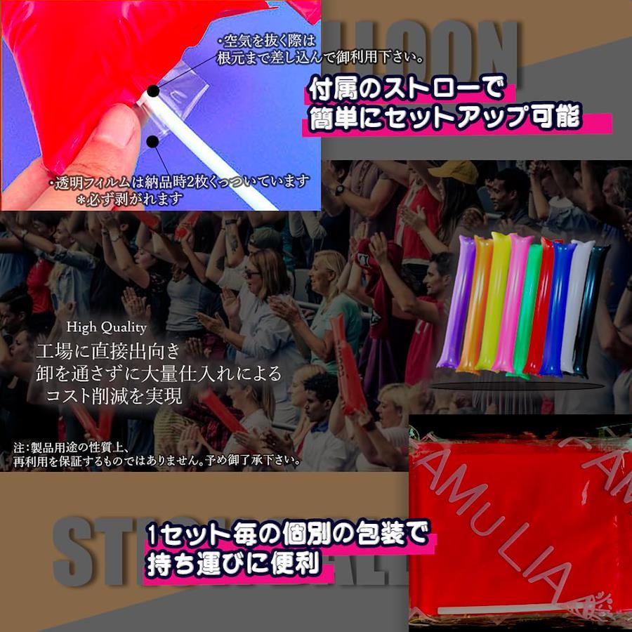 【サイズ:長さ×横幅】約60cm×10cm【数】100本(50×2セット)【色】計7色 赤・黄色・青・緑・オレンジ・紫・ピンク *各色均等数【試合観戦用応援グッズ】各種スポーツ観戦(サッカー,野球,ラグビー etc )イベント用。【お得な100本セット】応援用バルーングッズです。【各セット個別包装】各々セットにストロー付きで簡単にすぐに使えます。【免責事項】メーカーによる商品リニューアルに伴いパッケージ(内容量も含む)変更が行われた場合、新パッケージでお届け致します事ご了承願います。