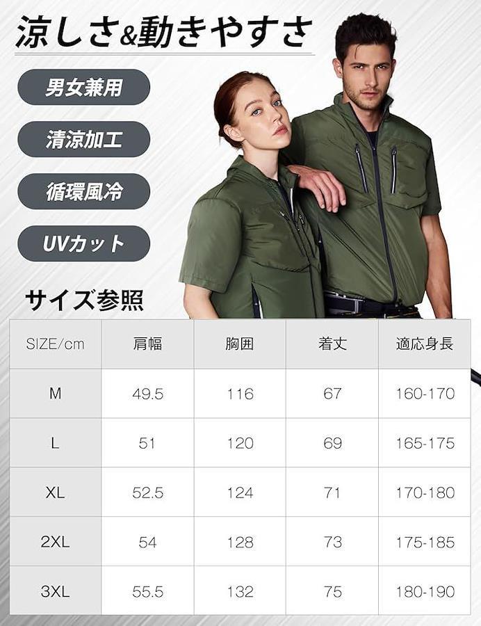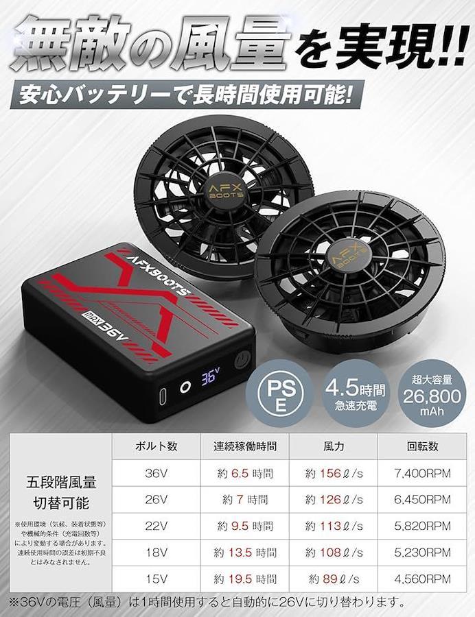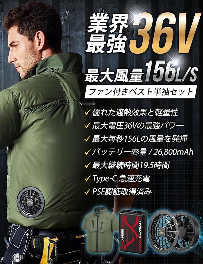 2025年最新モデル 36V高出力バッテリー&冷却ファン搭載半袖ベストのセット