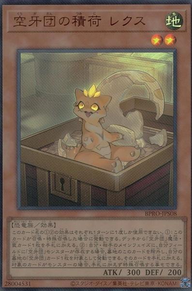 ■搭載パック:[BPRO]BURSTPROTOCOL■収録:基本パック■■レアリティ:ウルトラレア■種類:効果モンスター■属性:地■種族:恐竜族■星(レベル、ランク):2■攻撃力:300■守備力:200■リンク:‐■リンク方向:‐■ペンデュラムレフト:‐■ペンデュラムライト:‐■■シリーズ:第13期■効果テキスト:このカード名の①②の効果はそれぞれ1ターンに1度しか使用できない。①:このカードが召喚・特殊召喚した場合に発動できる。デッキから「空牙団」魔法・罠カード1枚を手札に加える。②:自分・相手のメインフェイズに、自分フィールドに「空牙団」モンスターが存在する場合、墓地のこのカードを除外し、自分の墓地の「空牙団」カード1枚を対象として発動できる。そのカードを手札に加える。対象のカードがモンスターの場合、手札に加えず特殊召喚する事もできる。■ペンデュラムテキスト:‐