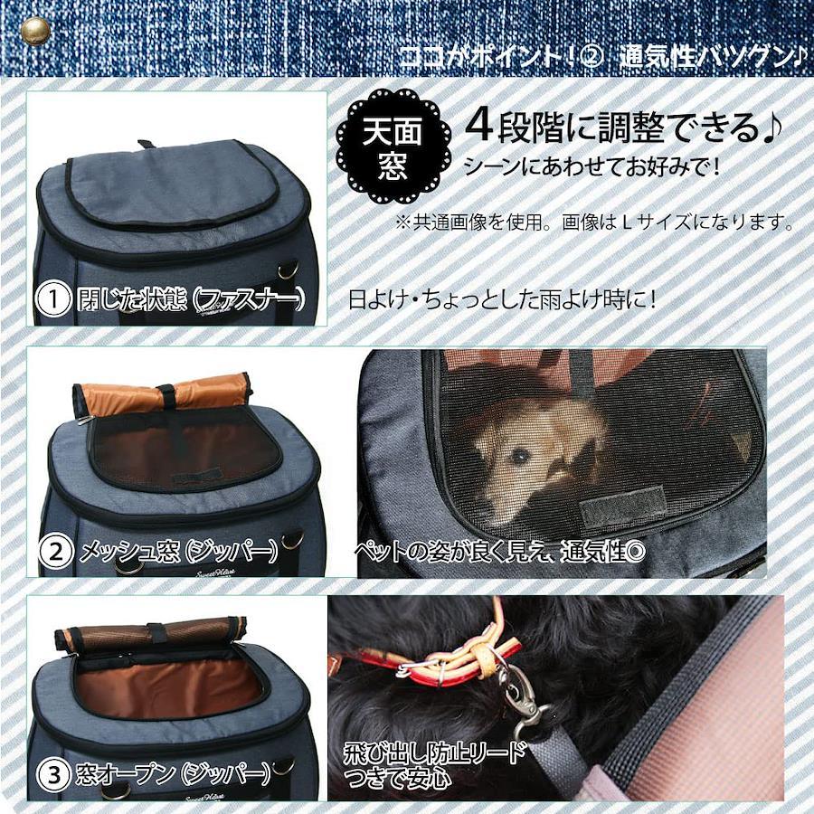 商品紹介 「スイートハート Sサイズ」コンパクトだけど多機能なペットカート 大好評のスイートハートカートが新たにリュックとしてもご使用することができる新機能を搭載しました。 【スイートハート 4WAY】 1.カートとして使用 2.キャリーバッグとして使用 3.車のシートベルトを付けてドライブキャリーとして使用 4.リュックとして使用 ★リュックは背負っている時に肩からベルトがずり落ちないように、 バストの高さに両サイトのベルトを固定するパーツがついています。 ★カートとしての使用時、ハンドルを傾斜しても、バッグは垂直のまま。ペットへのストレスを軽減できます。 ★ペットの突然の飛び出しを防止する【飛び出し防止金具】が付いていますのでとっても安全です。 ≪フレーム≫ ・スリム&軽量 ・バッグは取り外し可能 ・360°回転する後輪でスムーズな運転 ・地面からの熱をやわらげ静音性も◎ ・収納時には場所をとらず車載にも便利 ・ハンドルを傾斜させても斜めにならない! 3WAY機能 ・収納バッグ付き ≪バッグ≫ ・日よけ&飛出し防止テント ・メッシュ窓のカバー開閉可能 ・通気性に優れ、ペットの様子を観察できます ・前面に小物用ポケット付き ・カートとの接続もかんたん! ・飛出し防止のリードフック1本付 ■サイズ:約46×32×99cm、(折りたたみ時)約41×19×61.5cm、(バッグ)約46×28×32cm ■適応体重:約~8kg ■材質:(カート)スチール、プラスチック、(バッグ)材質:スチール、ポリエステル、ナイロン 使用方法 1.カートとして使用 2.キャリーバッグとして使用 3.車のシートベルトを付けてドライブキャリーとして使用 4.リュックとして使用
