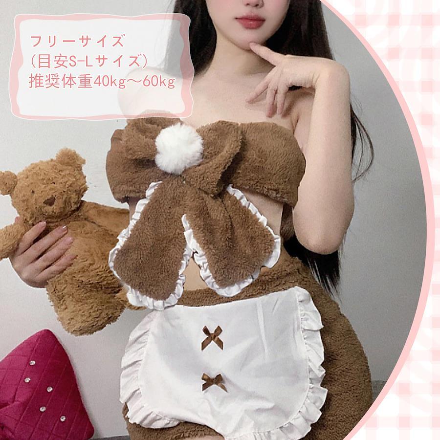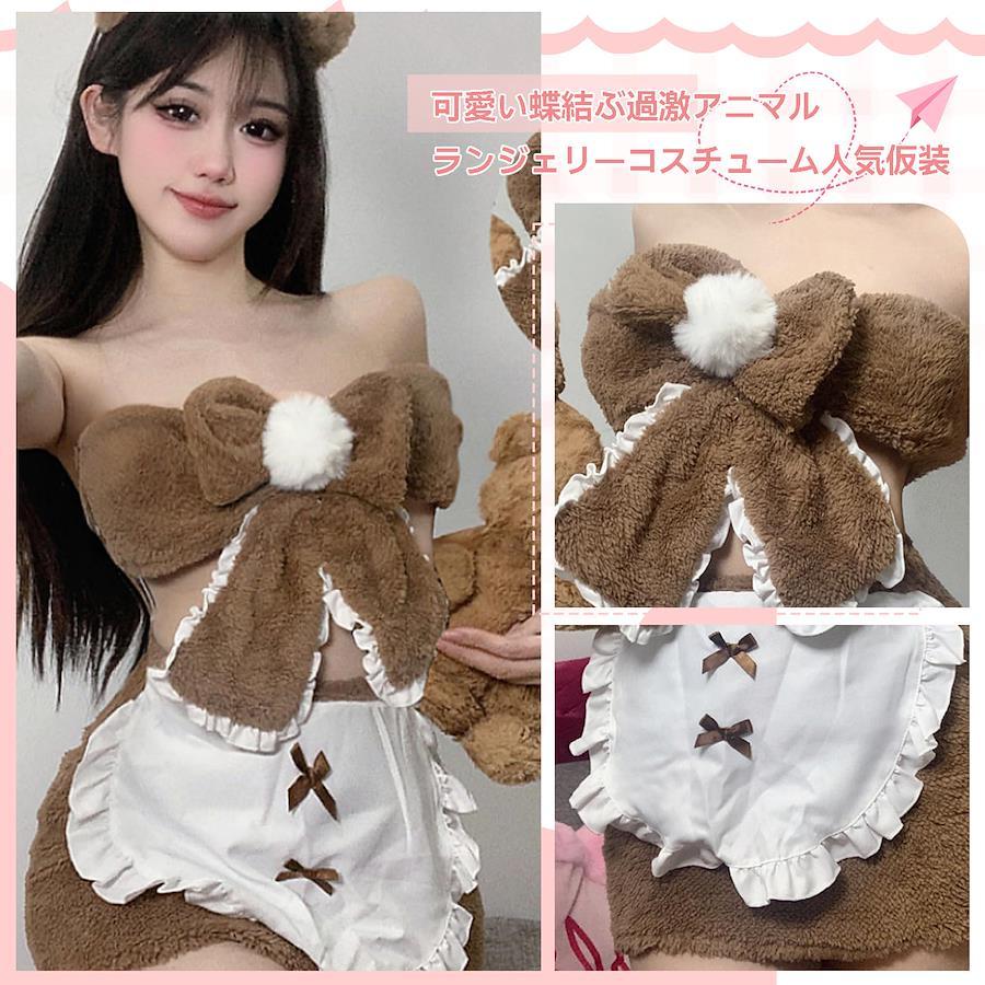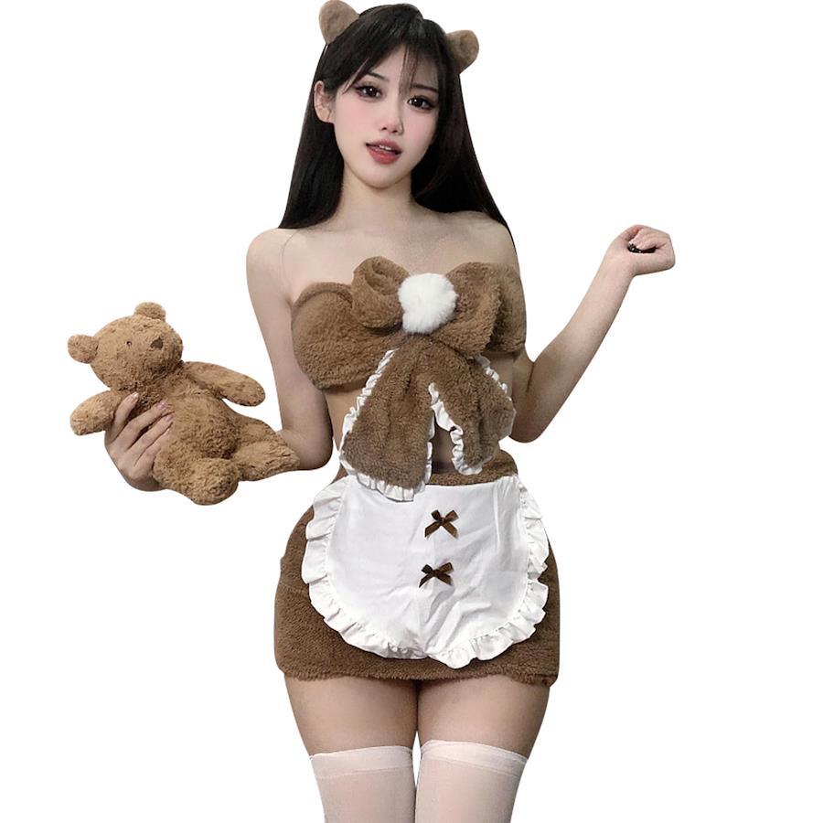 [Fantasyon] Sexy Bear Cosplay, Open Chest, Bowknot, Erotic, Naughty, Bear Ears, Babydoll, Cute, Cat, Bear Claws, Pocket, Training, Temptation