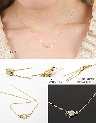 [材質]K10イエローゴールド[石]天然オパール3mm,天然ダイヤモンド2石トータル0.02ct[縦・横]約4.5x11.0mm(約1.2mmのバチカン部含む)[チェーン]K10YG製0.55mm幅カットアズキ40cm(約37cmとして使用可能)[トップ取り外し]不可