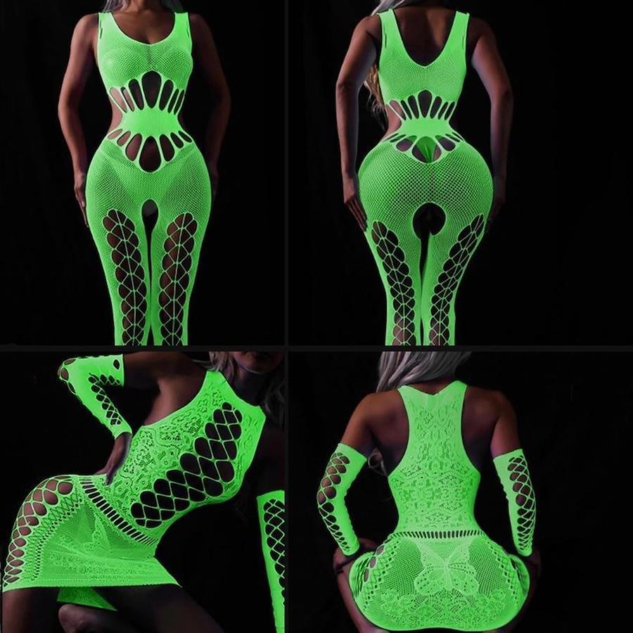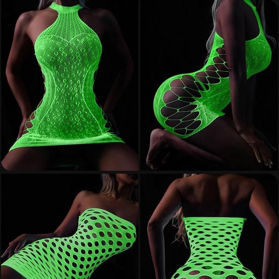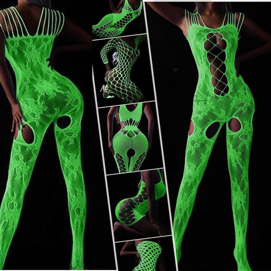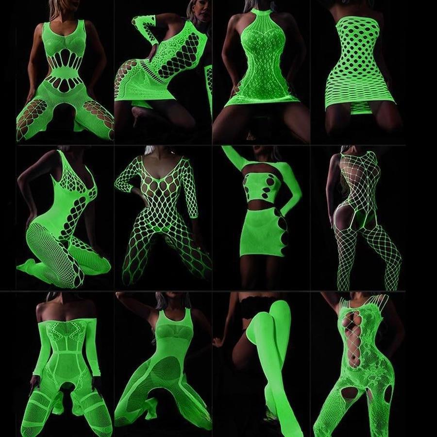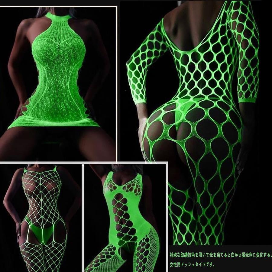 [FateMaster] Glow-in-the-Dark Fishnet Stockings for Women, Sexy Fluorescent Mesh Stockings with Holes, Extreme Full-Body Tights, Glowing Socks, Pantyhose
