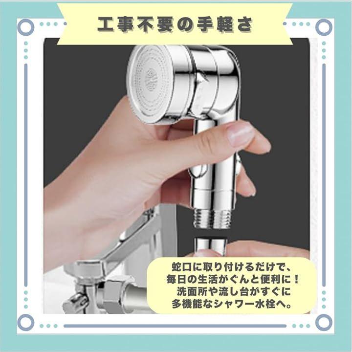 「工事不要の手軽さ」蛇口に取り付けるだけで、毎日の生活がぐんと便利に。洗面所や流し台がすぐに多機能なシャワー水栓へ。
