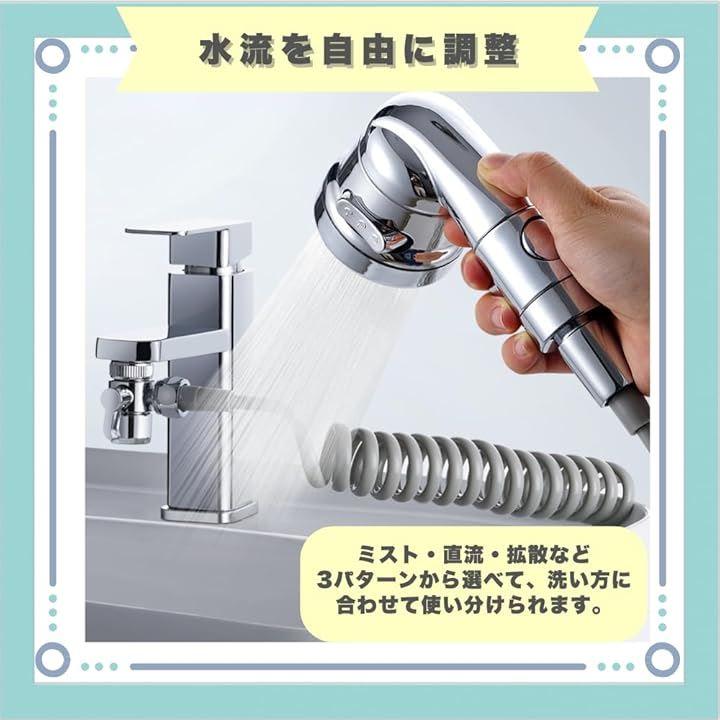 「水流を自由に調整」ミスト・直流・拡散など3パターンから選べて、洗い方に合わせて使い分けられます。